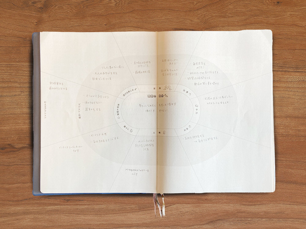 メモページが多いのが特に気に入っていて、日常のちょっとした気づき、ビジョンボード、単発で受けた講座のメモなど、1年のプライベートから仕事までなんでも書いています。