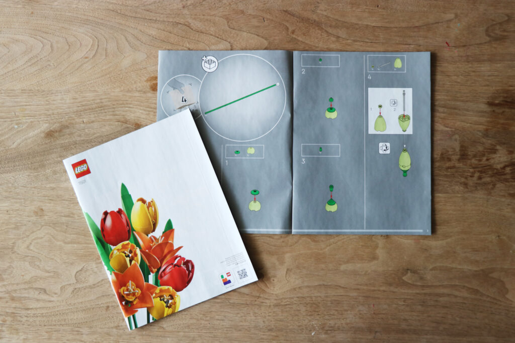 なんで冊子が2つあるんだろう?と思いましたが、よくよく見ると、それぞれ別のお花の組み立て説明書になっていました(表紙のお花がちゃんと違いますね)。