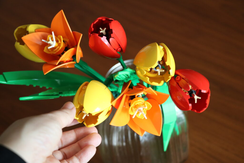 今回私が作成したのは一眼でかわいいと思った「チューリップのブーケ」なのですが、このレゴ®️ボタニカルシリーズには他にもたくさんの種類のお花があります。なかでもおすすめは、愛の花でもあるバラの花!