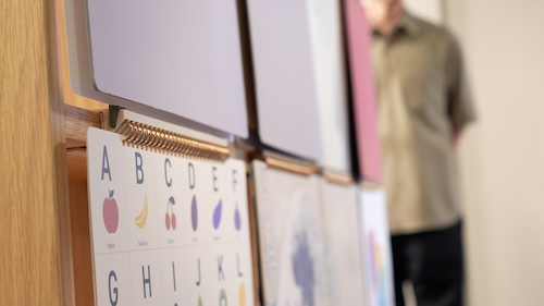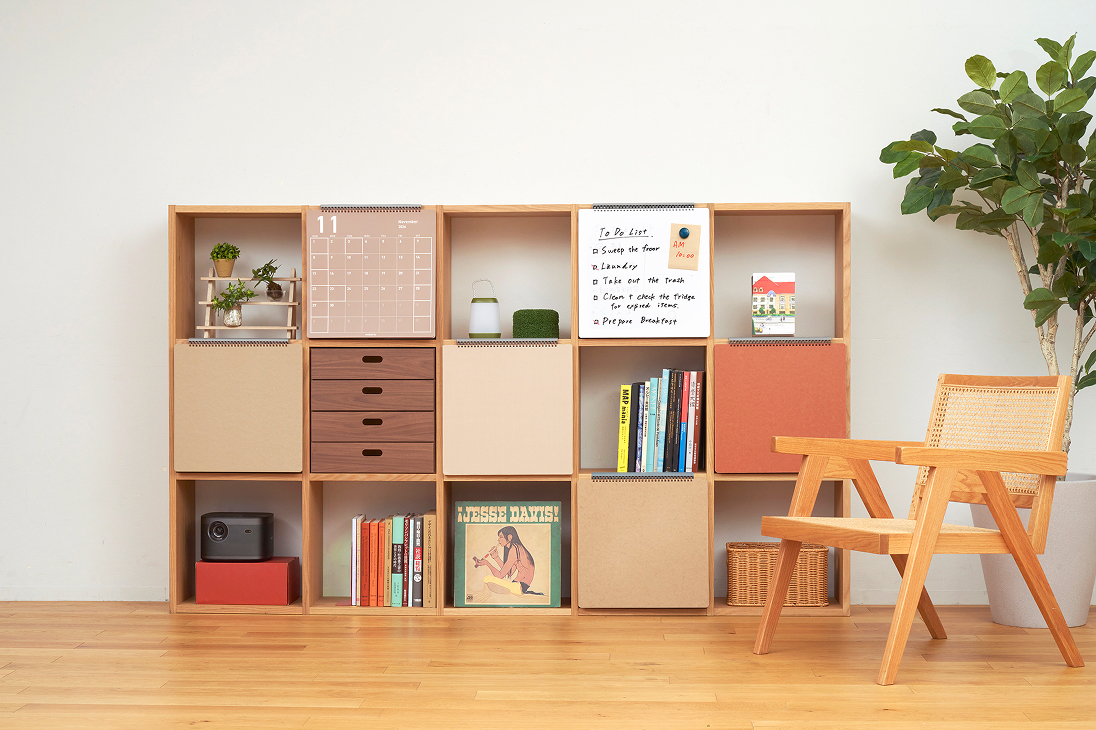 印刷会社として培ったリング製本の技術を活かし「隠す」と「見せる」を両立させ、アタッチメントにカレンダーやホワイトボード、知育ボードなど、暮らしに役立つ冊子をつけられるのが大きな特徴。